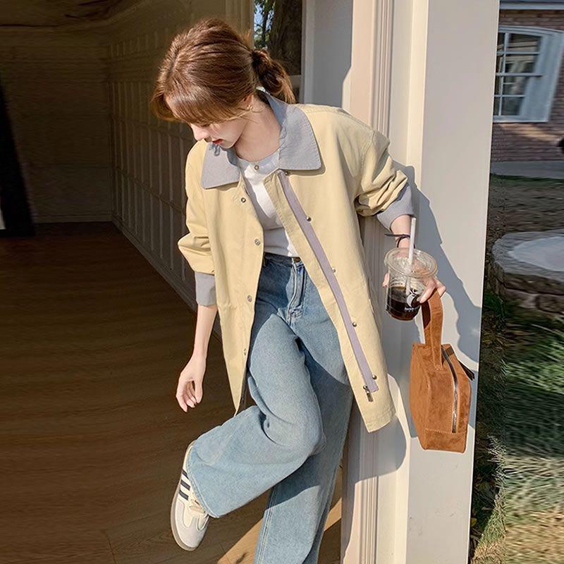 Werten Sie Ihre Garderobe mit diesem stilvollen Trenchcoat auf, perfekt für die Frühlings- und Herbstsaison.. Diese lässige Modejacke in schickem koreanischen Stil in mittlerer Länge zeichnet sich durch eine markante Colorblock-Steppung aus, die einen Hauch moderner Eleganz verleiht.. Hergestellt aus hochwertigem Elasthan, bietet es eine bequeme und flexible Passform, während die dünne Oberbekleidungstärke es ideal zum Schichten macht.. Der Mantel ist mit einem raffinierten Umlegekragen geschneidert und ärmellos, was ihn zu einer einzigartigen Ergänzung Ihrer Sammlung macht.. Speziell für Frauen entworfen, vereint dieser Trenchcoat mühelos Mode und Komfort.