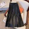 Fließender Hepburn-Stil A-Linien-Rock aus PU-Leder - Hohe Taille Mittellang für Damen