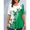 XL-7XL Übergröße Damen T-Shirts Damen O-Ausschnitt Mode Blume Patchwork Farbe Bedrucktes Top Kurzarm T-Shirt