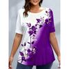 XL-7XL Übergröße Damen T-Shirts Damen O-Ausschnitt Mode Blume Patchwork Farbe Bedrucktes Top Kurzarm T-Shirt