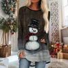 Übergröße Damen Frühling Weihnachten Schneemann Gedruckt Bequem Langarm Rundhals T-Shirt Lässig Weit Mittelang Tops