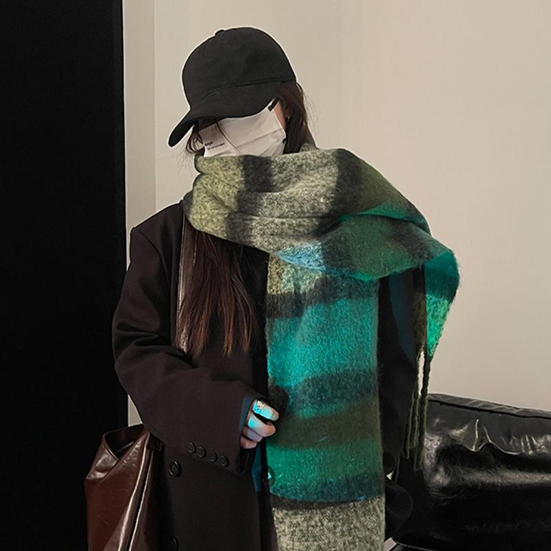 Autumn And Winter Thickened Mohair Scarf For Women All-Match High-End Tassel Maillard Plaid Warm Neck Scarf