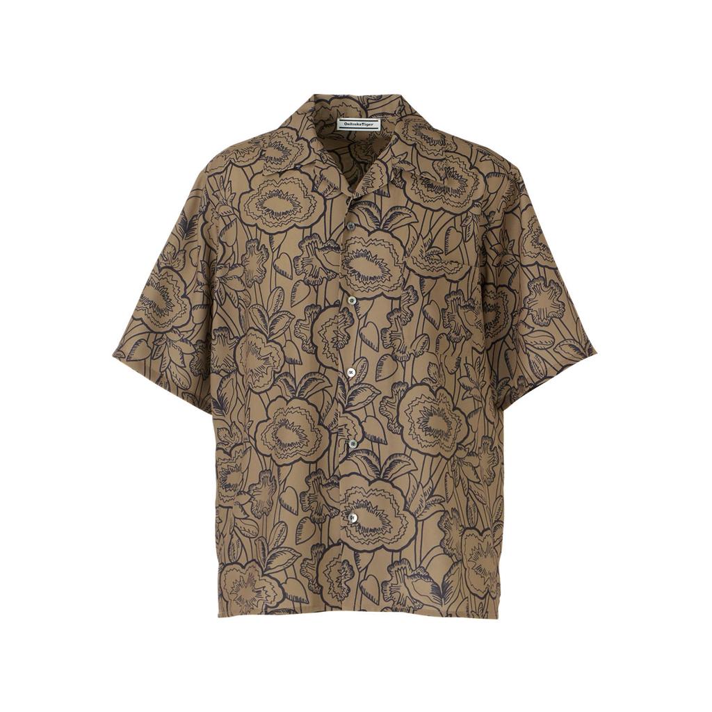 Onitsuka Tiger Printed Fashion Polo Button Short Sleeve Shirt Men shirts Light-Brown 2181B047-200