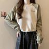 Amerikanisches Retro Raboss Ärmel Sweatshirt Damen Herbst Winter Neu Locker Kontrast Kordelzug Kurzes Oberteil