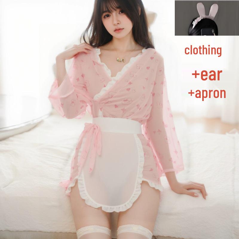 Japanese Bunny Maid Lingerie - Cute & Alluring Sleepwear with Bow & Bunny Print