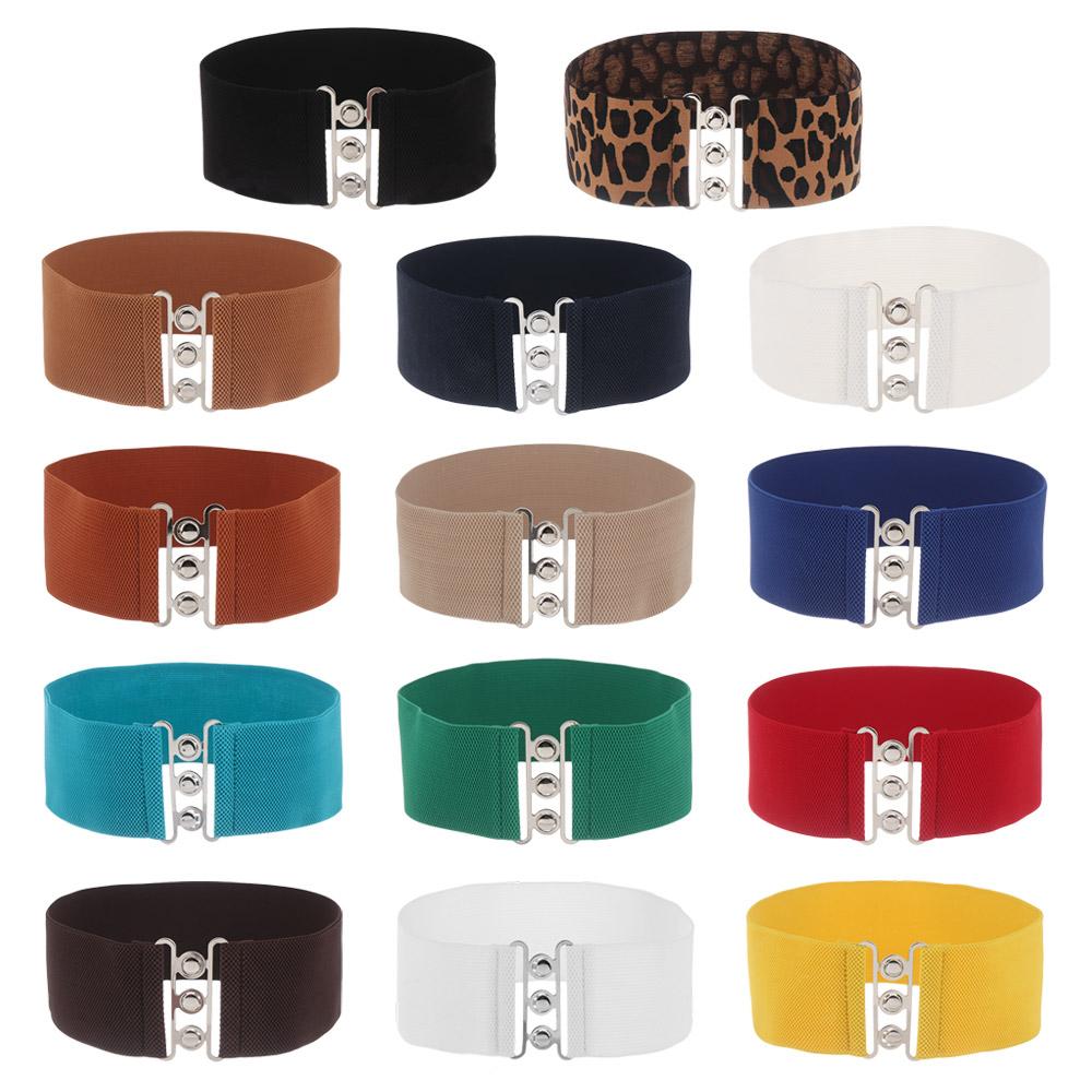 Damen Mode Breiter Elastischer Gürtel Mehrfarbig Metallschließe Taillenband zum Schnüren Lässiger Damenmantel Taillenband Kleid Taillenbänder