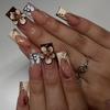 Press on Nails Long Square Fake Nails Acrylic Glossy False Nails with 3D Flower Designs Reusable Full Cover Artificial Nail Supplies for Women 24Pcs
