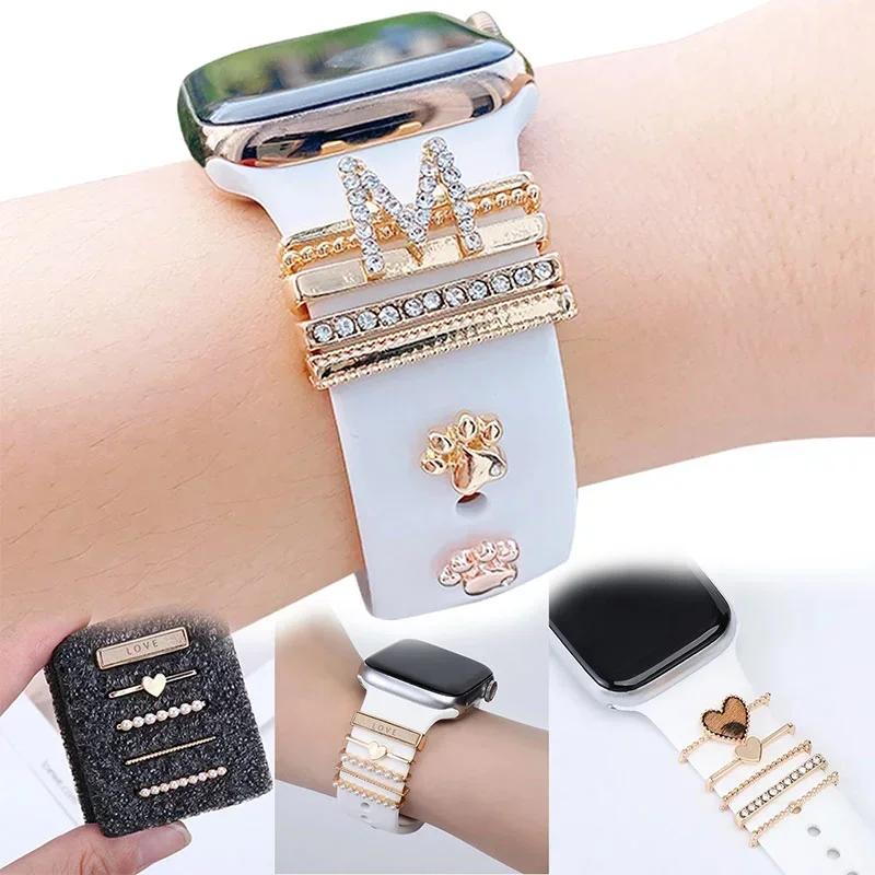 Diamant-Dekorationsring für Apple Watch Armband Serie 8 7 6 5 SE 9 Ultra 2 Schmuckanhänger für Samsung/Huawei 20mm 22mm Uhrenarmband