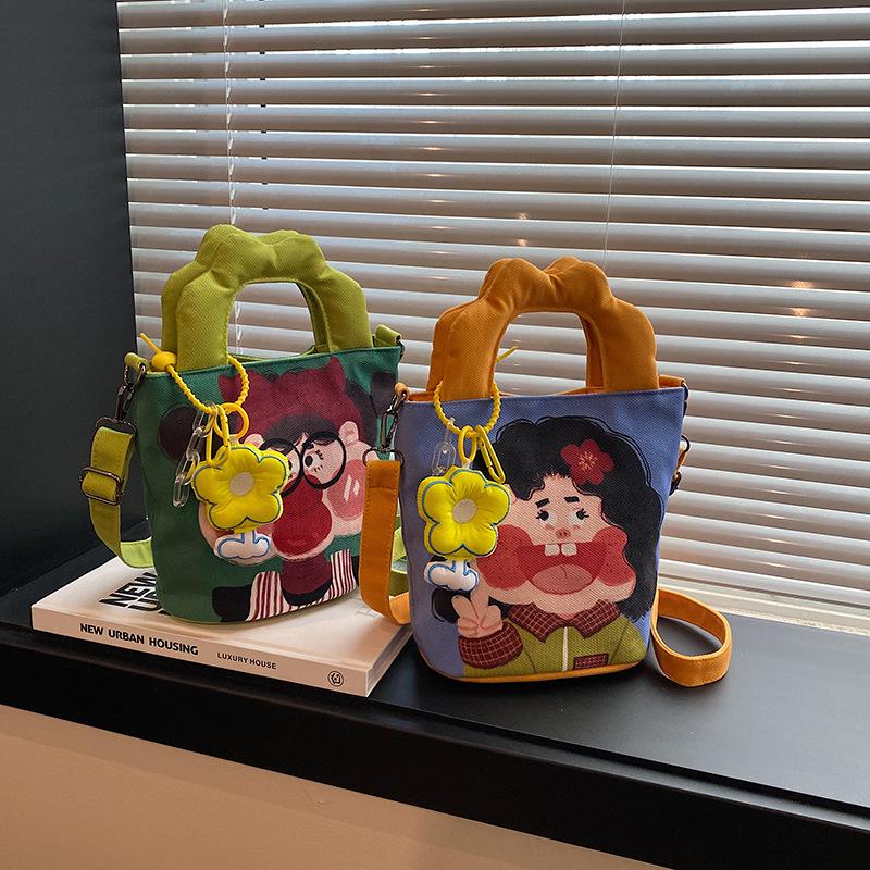 2025 Grenzüberschreitende Cartoon-Graffiti-Handtasche: Nischendesign Bucket Schulter- & Umhängetasche für Damen