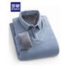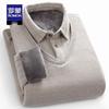 ROMON Men's Striped Fleece-Lined Faux Two-Piece Shirt Collar Knit Sweater