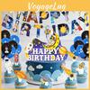 This space-themed birthday cake topper set features paper decorations designed to enhance astronaut and rocket party displays. The set includes a space suit flag, latex balloons, large and small cake picks, and streamers, all crafted from durable paper materials. Ideal for decorating birthday celebrations, these party props support vibrant scene creation and add thematic flair to cake displays. Suitable for indoor or outdoor parties, the decorations resist tearing when handled carefully. Wipe clean with a damp cloth to maintain their appearance and ensure repeated use.