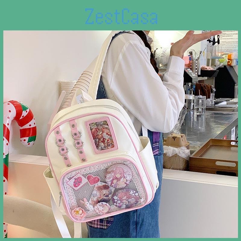 Blocked Simple Color Student Backpack With Transparent Compartment Badge Display