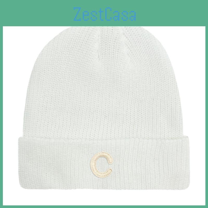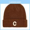 C Pattern Mens Knitted Hat Plain Solidcolor Windproof Cold Outdoor Autumn Winter