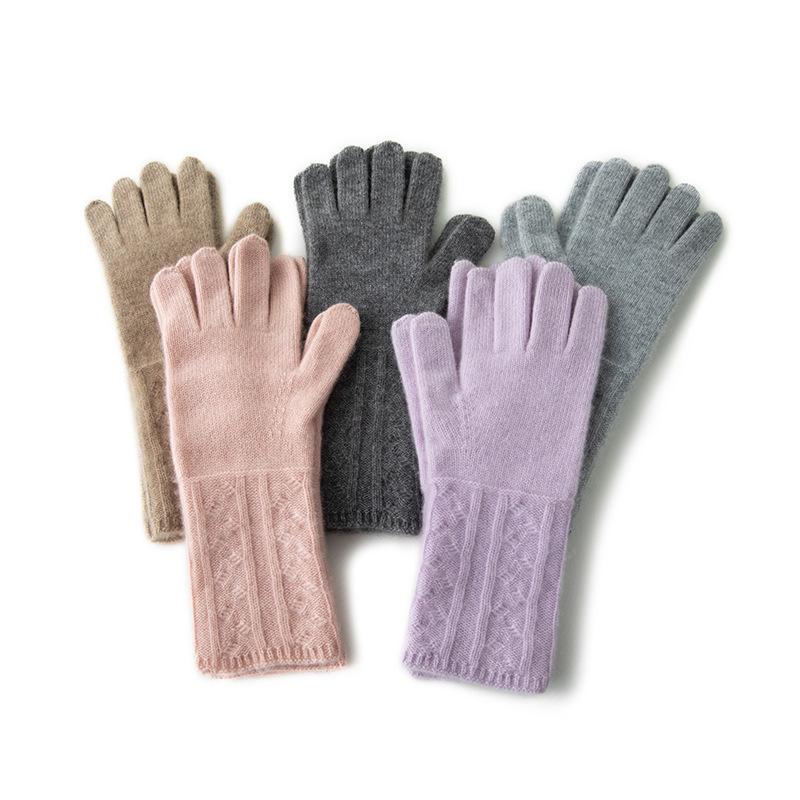 Cashmere Autumn and Winter New Unisex Retro Jacquard Warm Cycling Windproof Knitted Five Finger Gloves