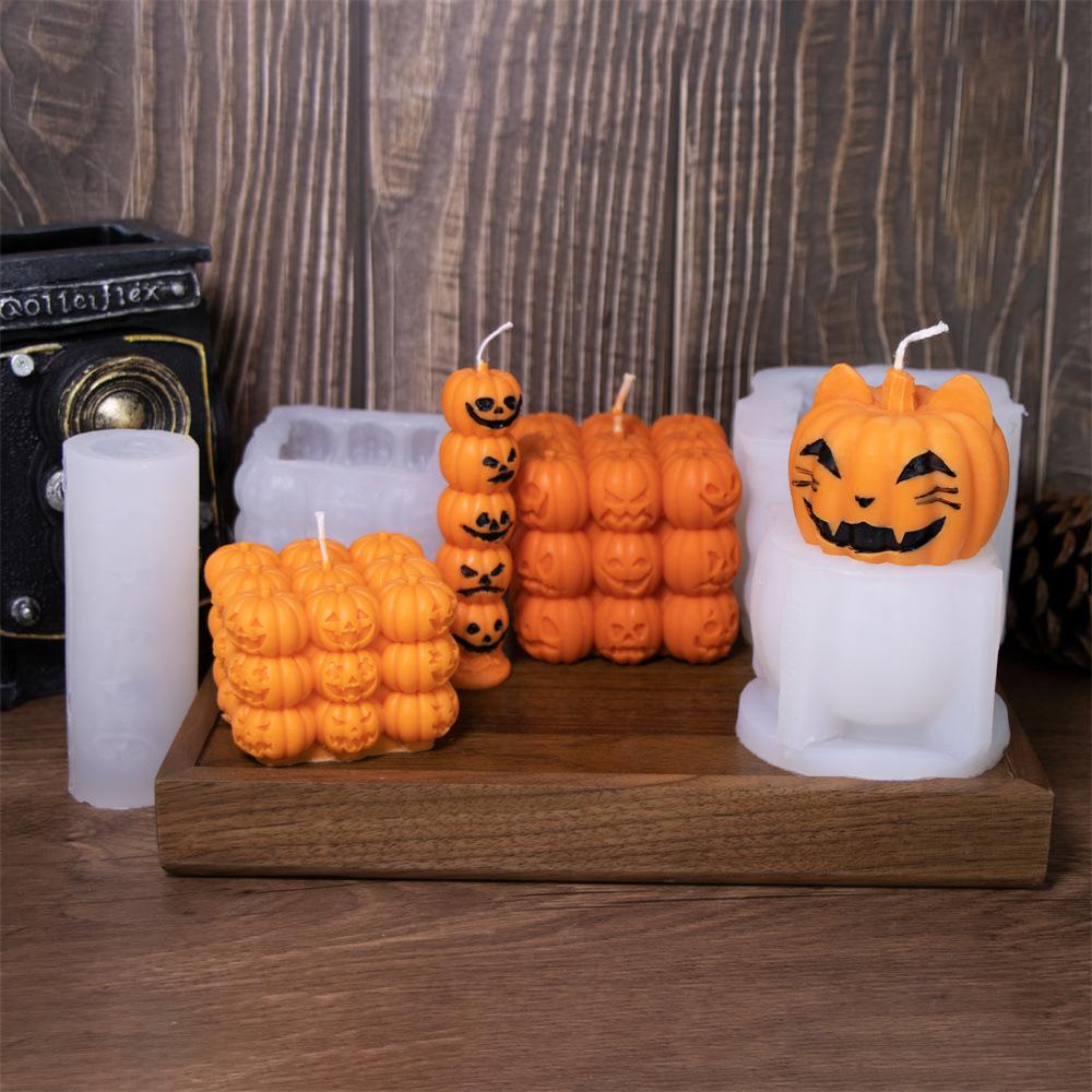 Halloween Gestapelte Kürbis Kerzenform DIY Handgemacht Böser Kürbis Totenkopf Pflanze Harz Gipsform Handwerk Party Dekoration
