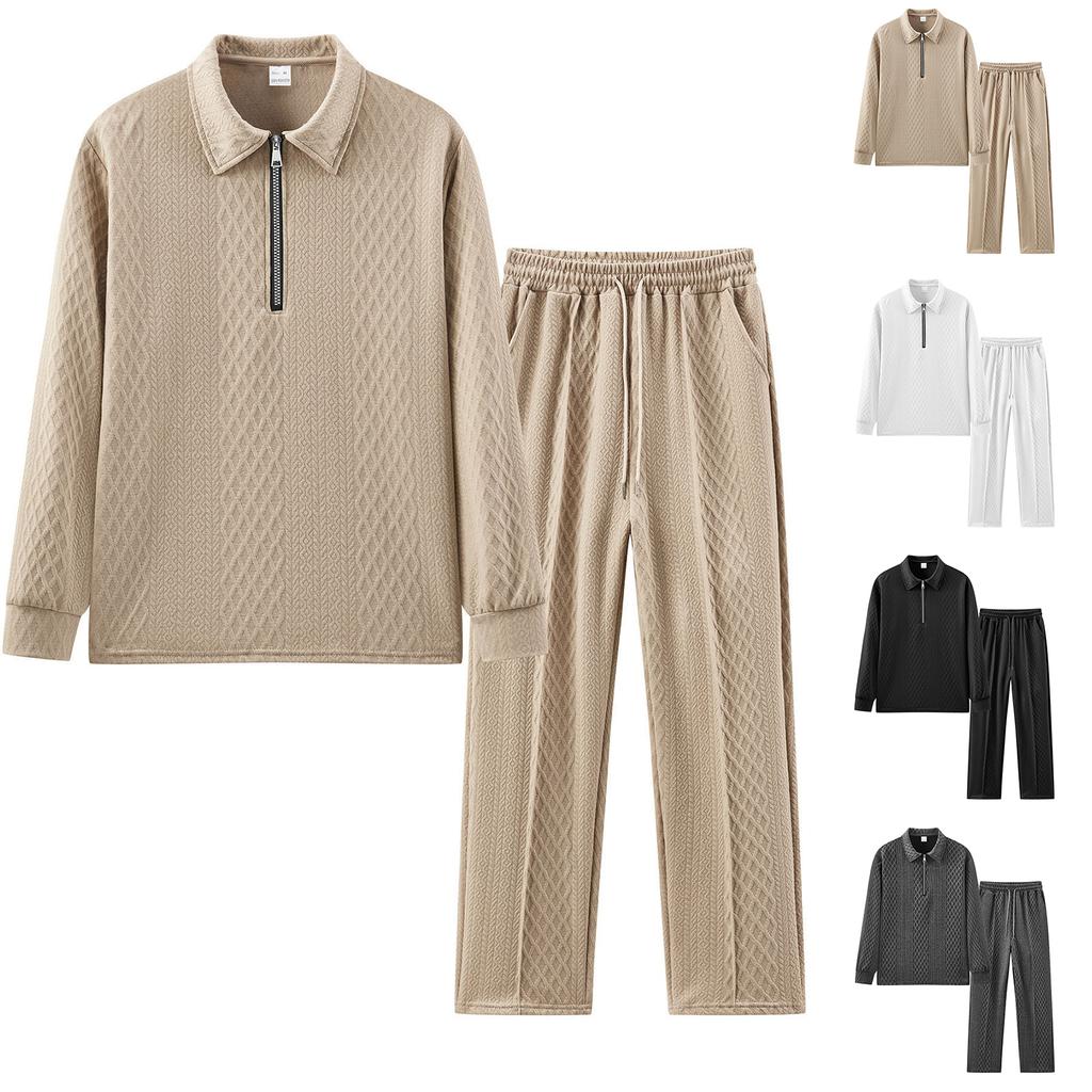 Herren Freizeit Umlegekragen Lange Ärmel Hose Set