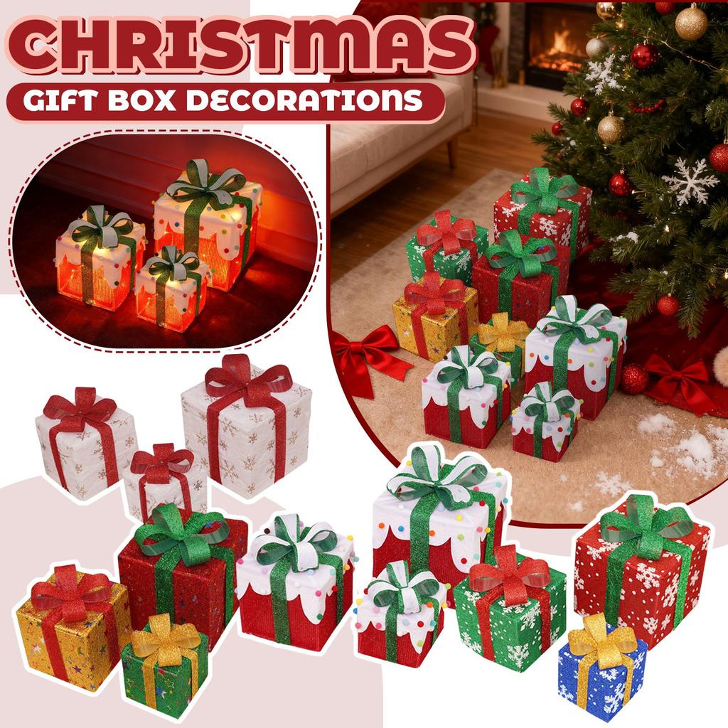 Weihnachtsbeleuchtung, Weihnachtsgeschenkbox, Dreiteiliges Set, Weihnachtsprodukte, Requisiten und Ornamente zur Dekoration für Geburtstagsfeiern.