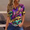 Damen-T-Shirt, T-Shirt, bedruckt, Knopfleiste, kurzärmelig, für den Alltag, Wochenende, modisch, Basic, V-Ausschnitt, normales Oberteil