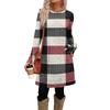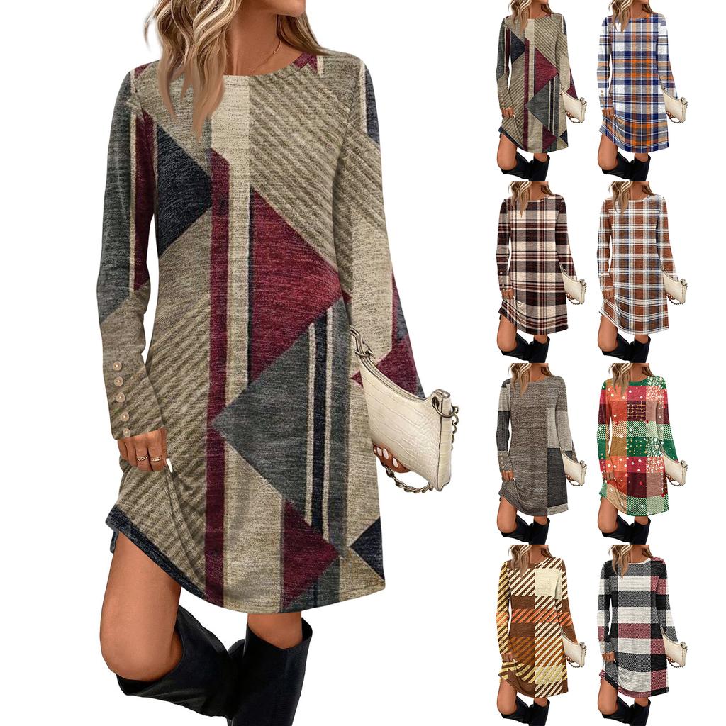Damenmode Freizeitkleid mit Taschen, dekorativen Knöpfen, Rundhalsausschnitt und langen Ärmeln