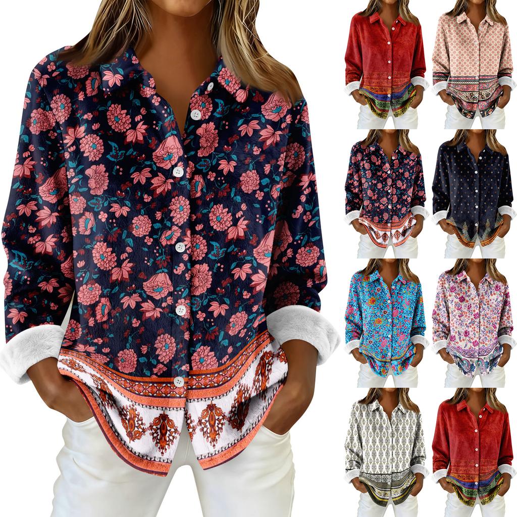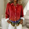 Damen-Hemdbluse, bedruckt, Knopfleiste, langärmelig, lässig, Basic, Hemdkragen, normales Oberteil