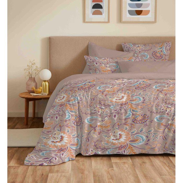 Pack complet housse de couette réversible "Vanessa" 6 pièces pour lit 180 x 200 "King Size" Bergame Nude