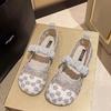Mary Jane Sandalen Damen 2025 Sommer Atmungsaktive Mesh Schuhe Flache Doudou Schuhe mit Rock Französischer Abendwind Oma Schuhe