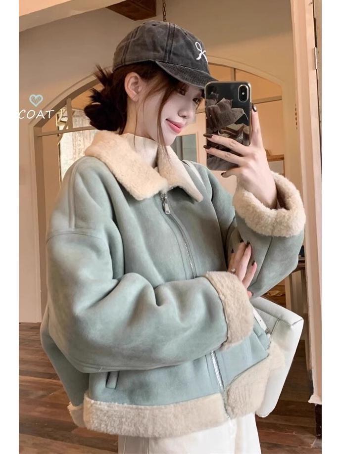 Hochwertige Damenjacke für zierliche Frauen 2025 aus Plüsch-Lammwolle - Pelzgefüttert, verdickt, warm und kurz mit Revers