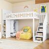 Lit mezzanine - MUVOE - 90x200 cm - Bois massif - Échelle de rangement - Garde-corps sécurisé