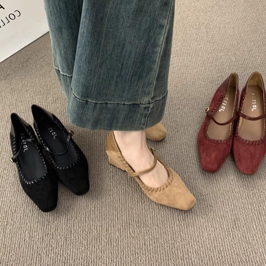 Französisch dicker Absatz Retro eckige Spitze mit Mary Jane Schuhen Spät Abendwind vielseitig nicht müder Fuß mittlerer Absatz Pendeln einzelne Schuhe Frauen