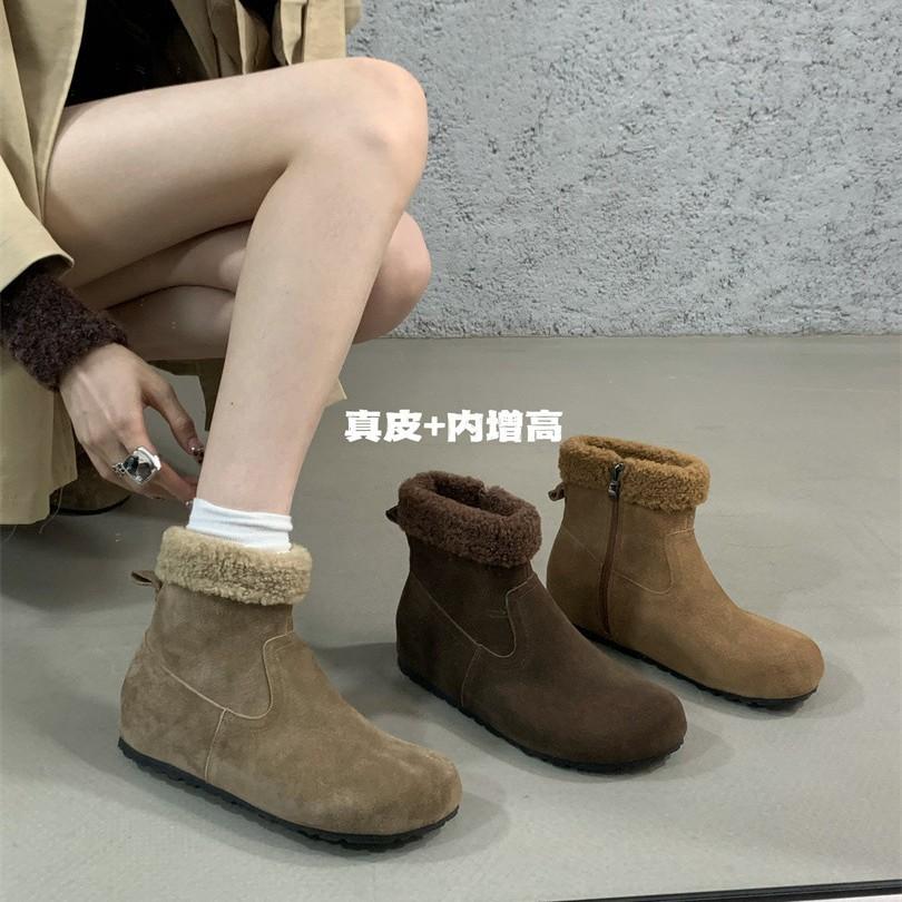 French snow boots women's 2025 new lamb wool plush warm short boots inner height-increasing fluffy boots