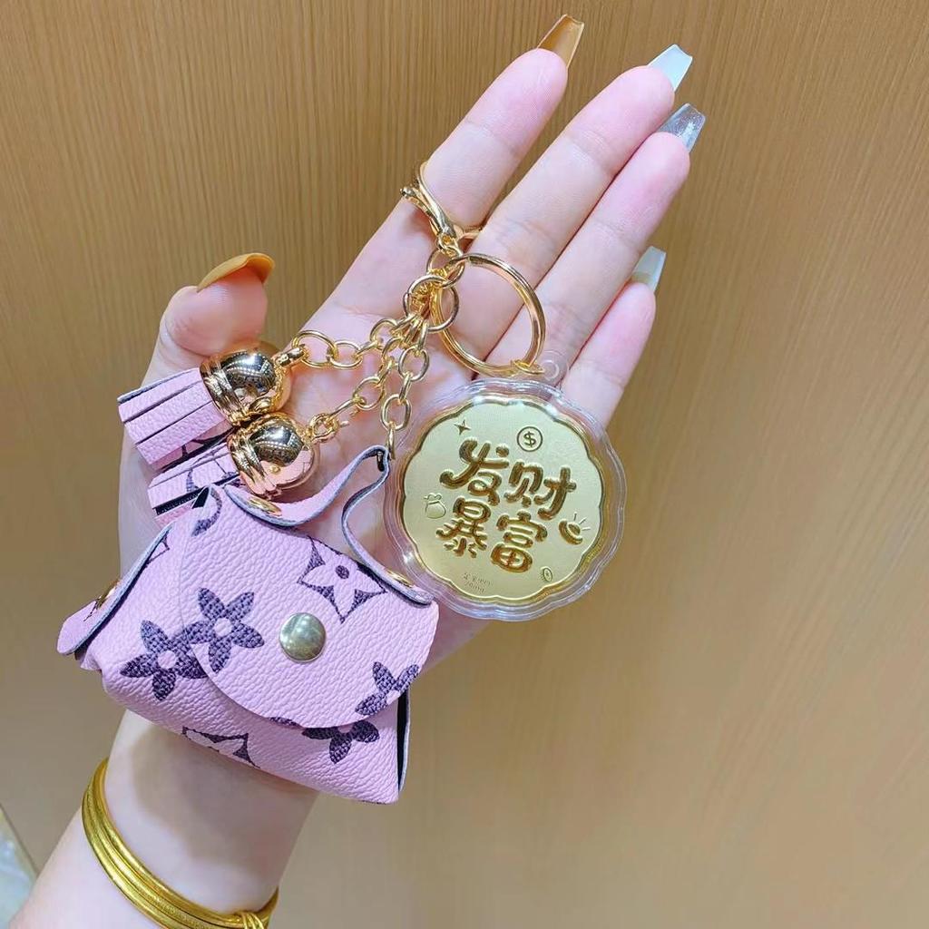 Luxury Leather Keychain: Shui Bei Style Wealth-Attracting Mini Phone Pendant