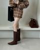 Khakifarbene Stiefel mit innerer Erhöhung, lange Stiefel, Damenschuhe, 2025 neu, Herbst und Winter, eckige Spitze, dünner langer Schaft, Reiterstiefel