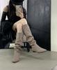 2025 Herbst und Winter Französische Retro Wildleder Stiefeletten mit niedrigem Absatz Damen Stiefel mit dickem Absatz und spitzer Zehenpartie Plissiert Gestapelte hohe Damenstiefel
