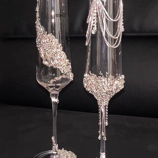 DIY Crushed Diamond High-Stemmed Wedding Toasting Glasses Pair - Handmade Bride & Wedding Gift