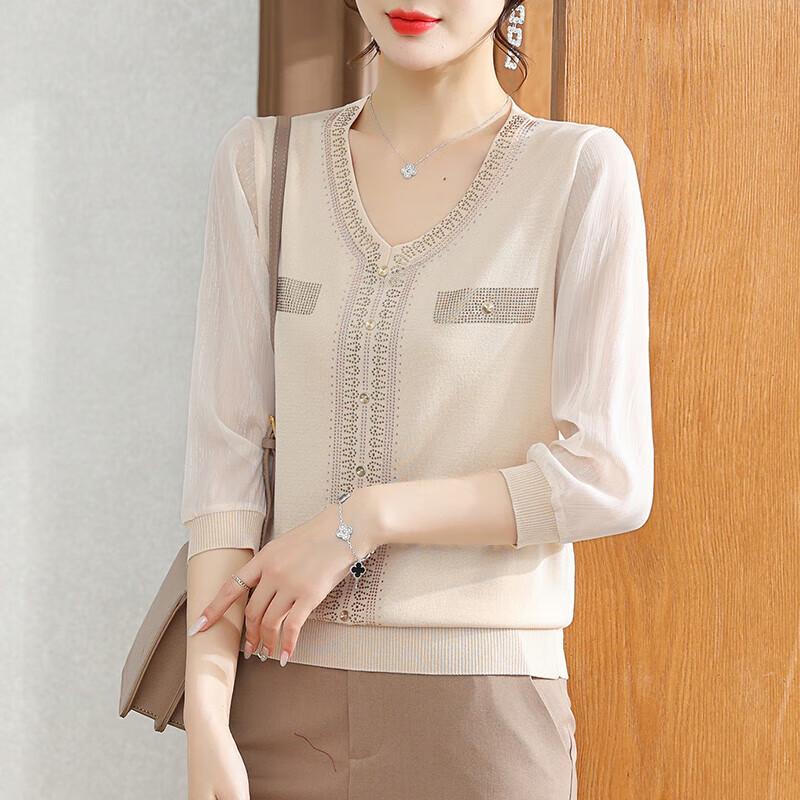 Xuexi Damen Langarm-T-Shirt mit Strassverzierungen
