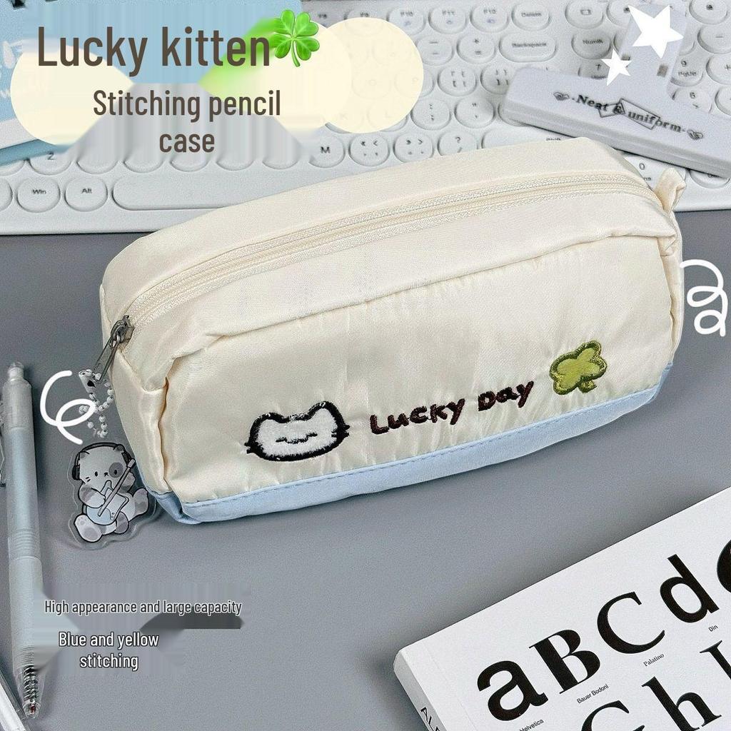 Großes Glückskatzen-Patchwork-Federmäppchen - Aufbewahrungsbox für Schreibwaren zum Schulanfang