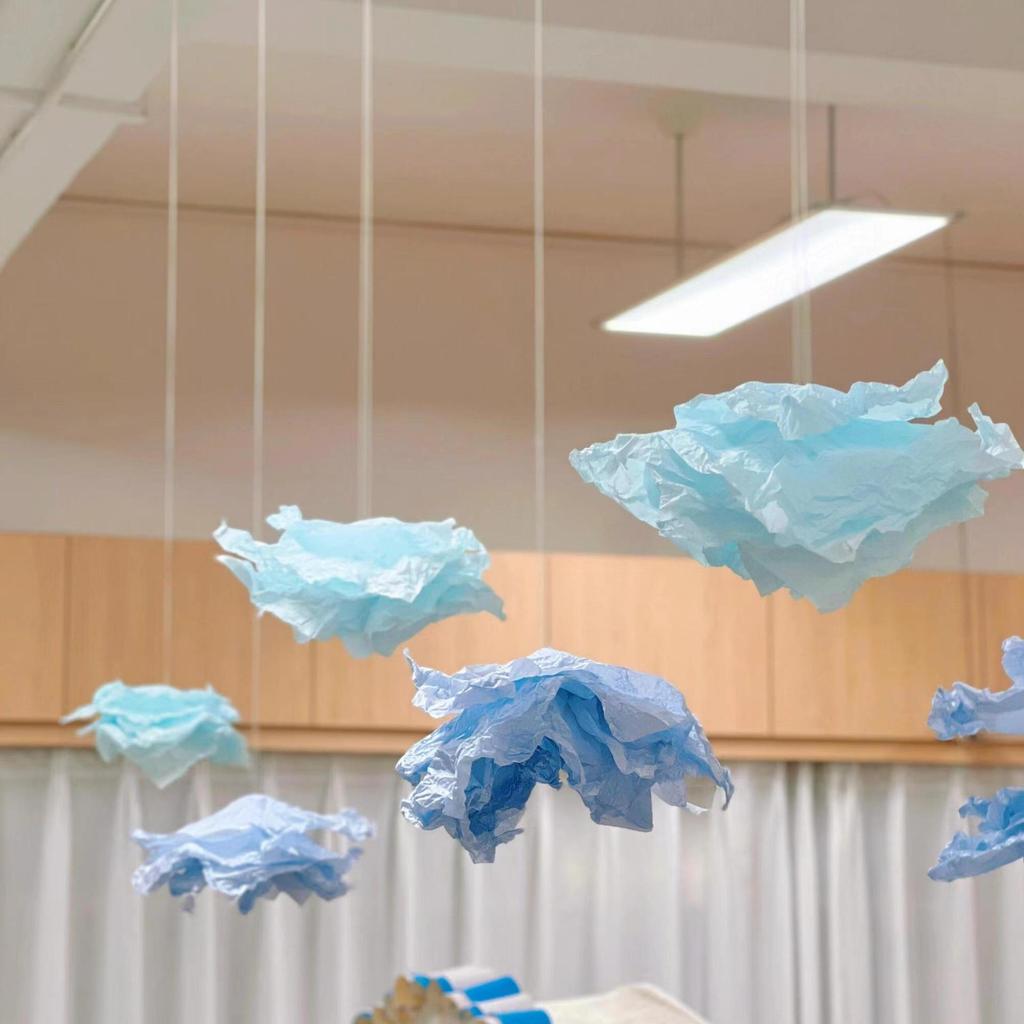 3D Cloud Tissue Paper Wall Ornaments for Kindergarten Decor