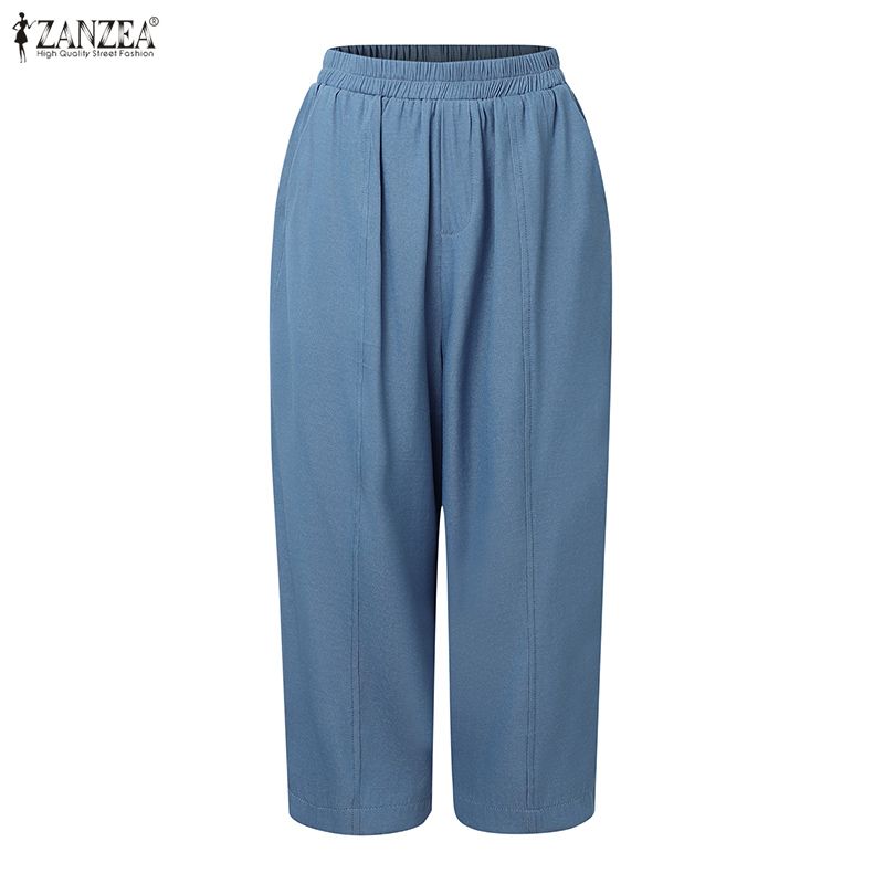 ZANZEA Lässige, elastische Taille, einfarbige, lockere, verkürzte Hose für Damen
