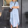 ZANZEA Women Turn Down Collar Long Sleeve Loose Stripe Dress
