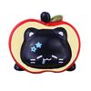 Verspielte Designelemente: Mit vier bezaubernden schwarzen Katzenfiguren in verschiedenen Posen, jede kunstvoll mit lebhaften roten Fruchtmotiven verwoben. Ob sie auf Fruchtscheiben faulenzen, aus einer halbierten Frucht hervorlugen oder mit fruchtigen Accessoires geschmückt sind, diese Katzen strahlen skurrilen Charme und kindliche Verwunderung aus.