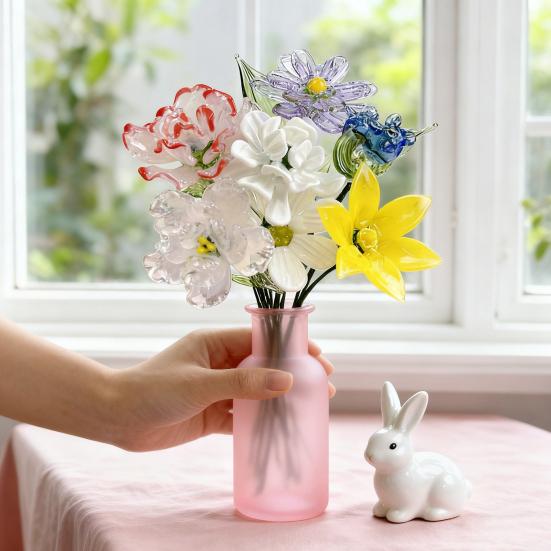 Jede Blume wird von erfahrenen Kunsthandwerkern sorgfältig mundgeblasen und fängt die Essenz der Natur in einem einzigartigen Kunstwerk ein.. Der flexible Drahtstiel ermöglicht eine einfache Anpassung, sodass Sie Ihr ideales Bouquet-Arrangement kreieren oder es perfekt an jede Vase anpassen können.