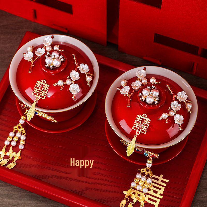 Wedding Tea Cup Set - Toasting Pair, Happy Bowls & Cups, Complete Wedding Supplies