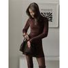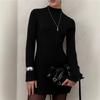 Langärmeliges Strickkleid mit hohem Kragen Frühling Casual A-Linie Kurzer Rock Europäisch Amerikanischer Stil Verspielt Modisch Damenkleid