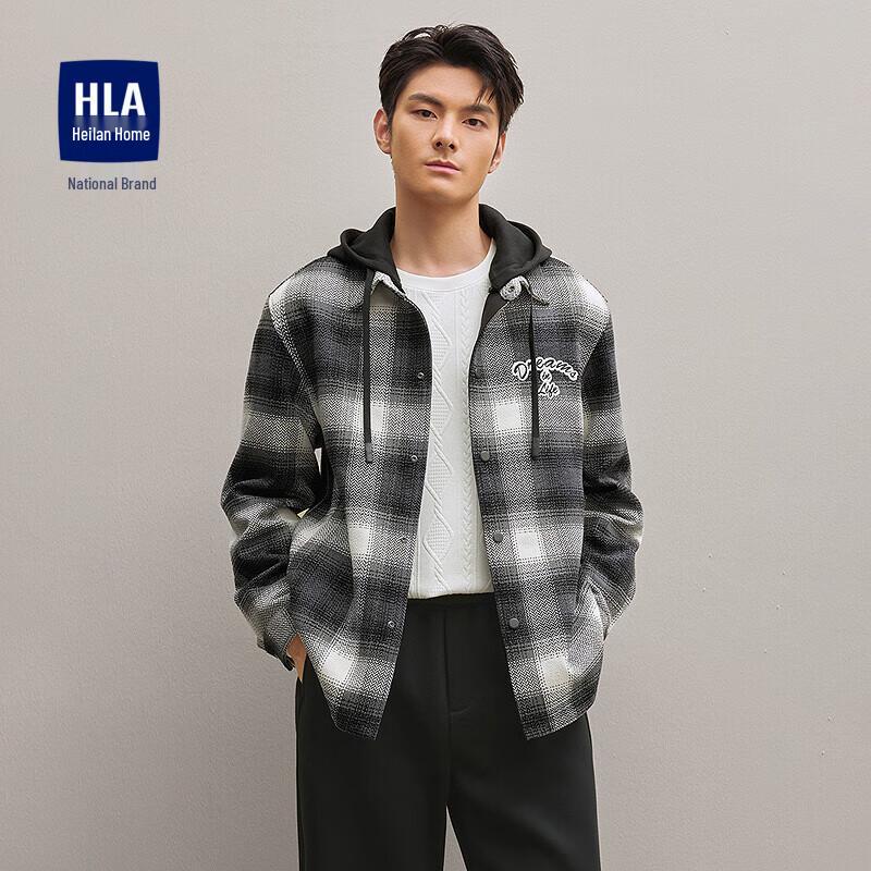 HLA Herren Freizeit-Plaidjacke mit abnehmbarer Kapuze