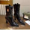 8cm spitze High-Heel Kurzstiefel Damen Herbst und Winter neu dicke Absätze Plateau-Stiefel ohne Reißverschluss Lackleder Temperament vielseitig fash