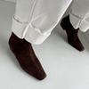 Französisch schlichter Stil quadratischer Kopf kleine nackte Stiefel flache Sohle dünne Stiefel Reißverschluss hinten kurze Stiefel Damen Herbst und Winter neue vielseitige Martinstiefel