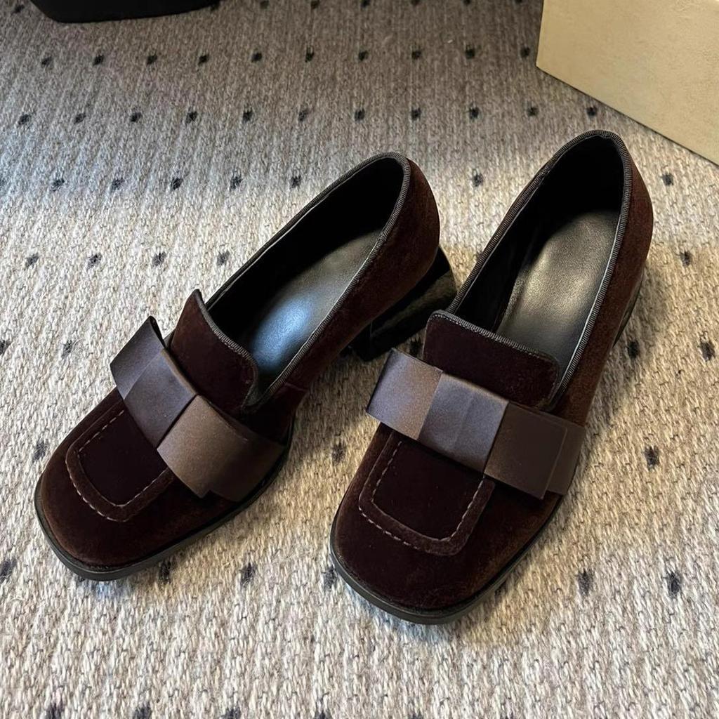 Wildleder Maillard Square Toe Dicke Ferse Slipper Damen Frühling und Herbst Neue High-End Einzelne Schuhe Mary Jane Damenschuhe