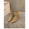Herbst Winter Hohe Qualität Damen Stiefeletten Mode Wildlederimitat Retro Neu Plissiertes Design Niedrig Absatz Reiterstiefel Botas Mujer