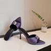 2025 Sommer neue spitze Satin Strass Metall Schnalle plissiert coole Slipper dünner Absatz tragen offen Zehen hohe Absätze Frauen