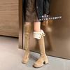 Leder-Ritterstiefel Herbst und Winter 2025 Retro Overknee-Stiefel Wildleder zum Umschlagen zwei Tragemöglichkeiten Stiefel mit dickem Absatz Damen